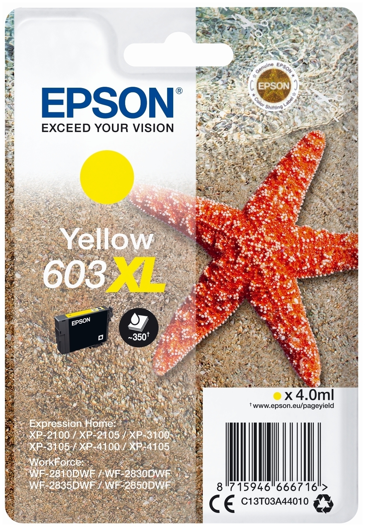 Original Epson 603XL Tintenpatrone Yellow ca. 350 Seiten C13T03A44010