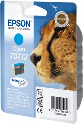 Original Epson T0712 Tintenpatrone Cyan 5.5 ml ca. 345 Seiten C13T07124012
