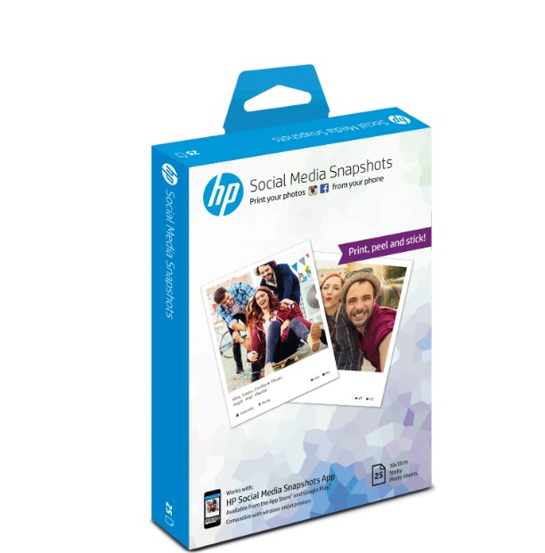 HP w2g60a social media snapshots fotopapier weiss, 10 x 13cm , 265 g/m², 25 blatt, halbglänzend, selbstklebend