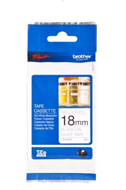 brother TZe-N241 Schriftband schwarz auf weiß 18 mm breit, 8 m lang, nicht laminiert